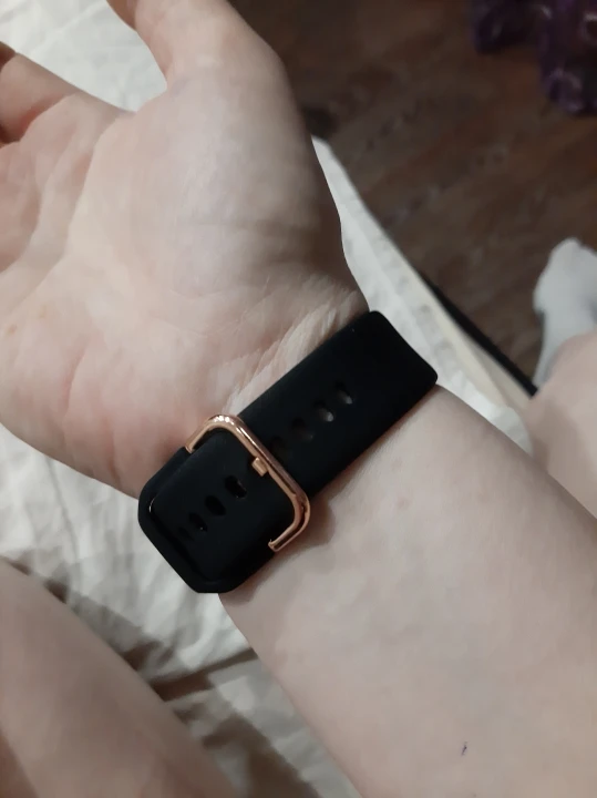 Nice color, just like the picture, also vrey smooth silicone. It's really nice and elegant and fits my Huawei Honor Magic Smartwatch, but unfortunately the strap is very long so I had to make another hole closer to the dial and cut some of the strap of at the end. For a girl's hand it is pretty long, but for boys I think it's ok.