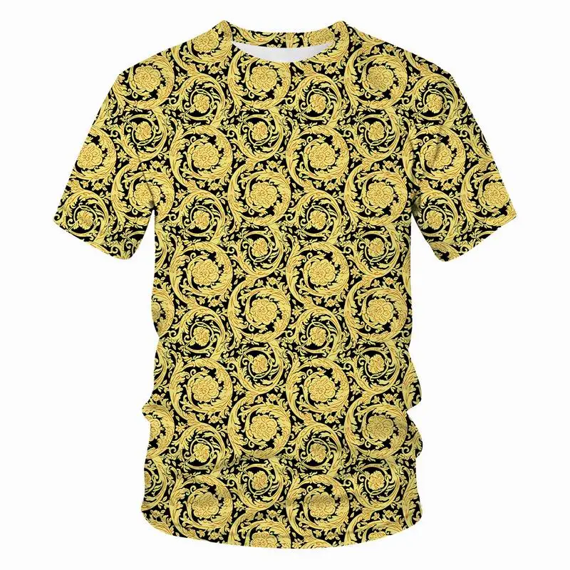 Футболка мужская с коротким рукавом, брендовая тенниска с 3D-принтом короны и золотых цветов в стиле барокко, роскошная одежда в Королевском Стиле, Графические Топы И Футболки в стиле хип-хоп
