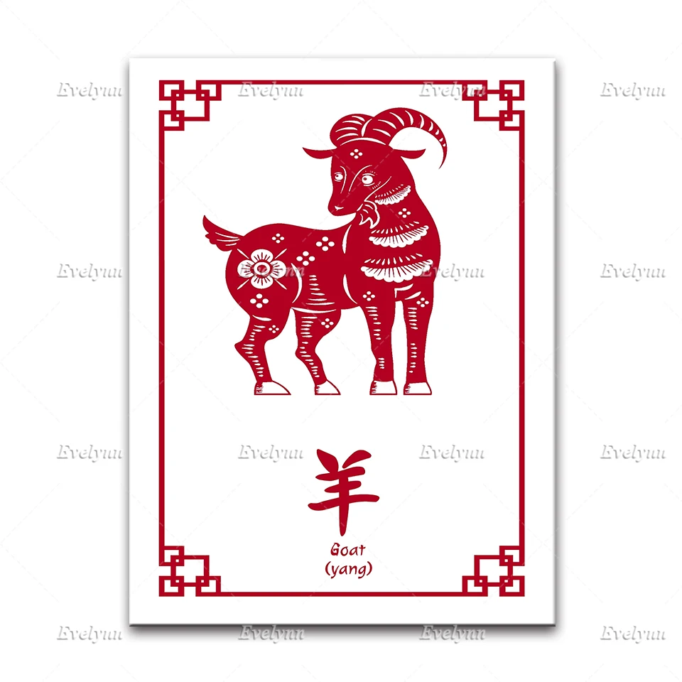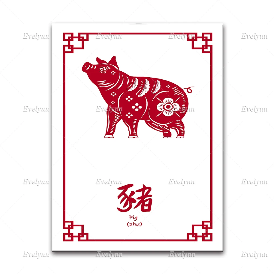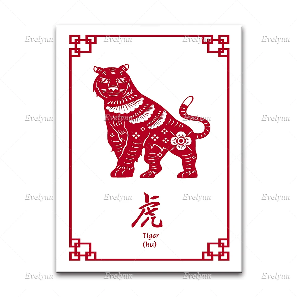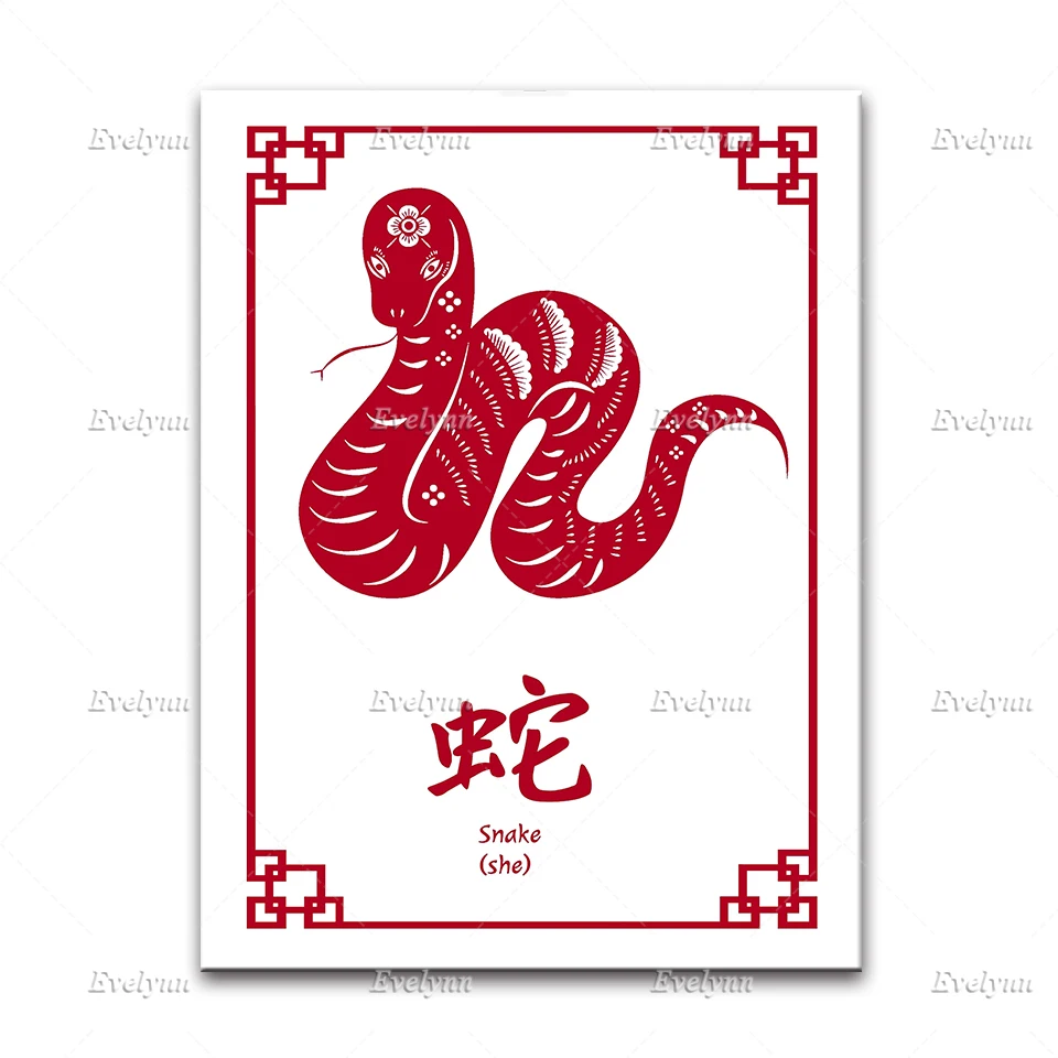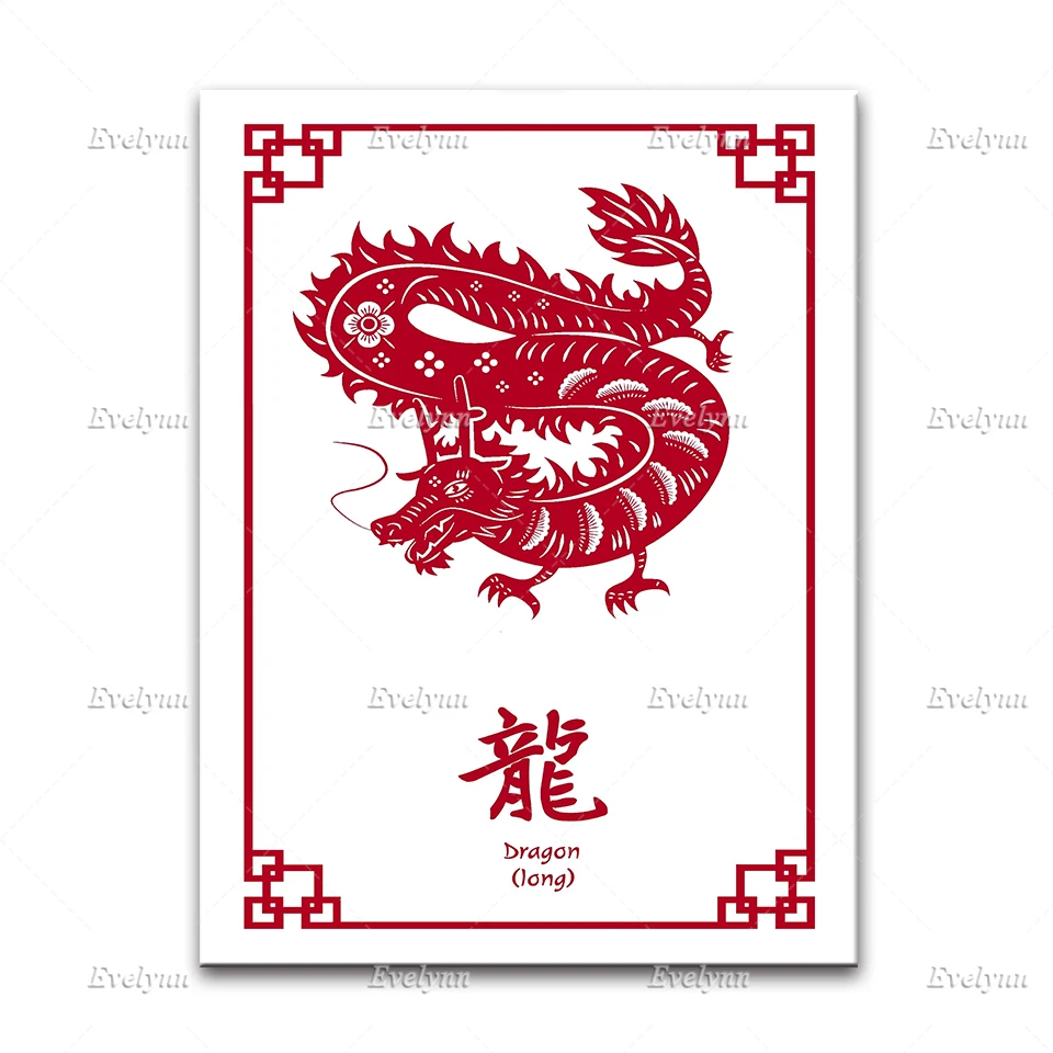 Постеры с китайскими знаками Зодиака, восточные искусства, дракон, член, свинья, змея, овечка, крыса, тигр, лошадь, бык, собака, настенное искусство, холст, домашний декор
