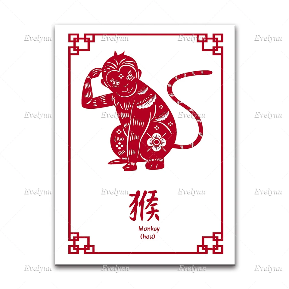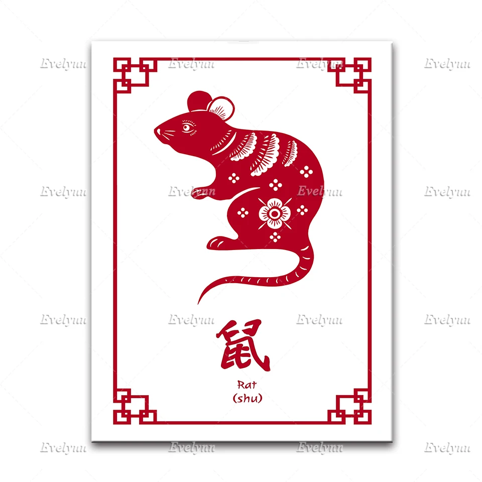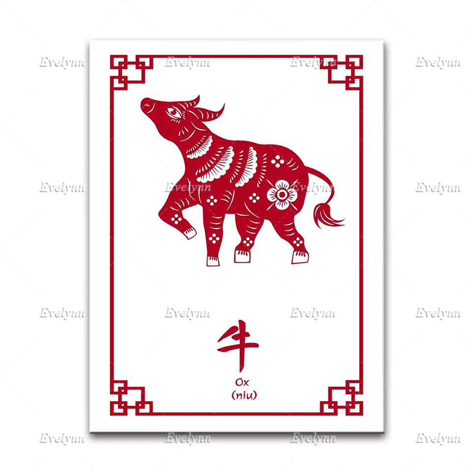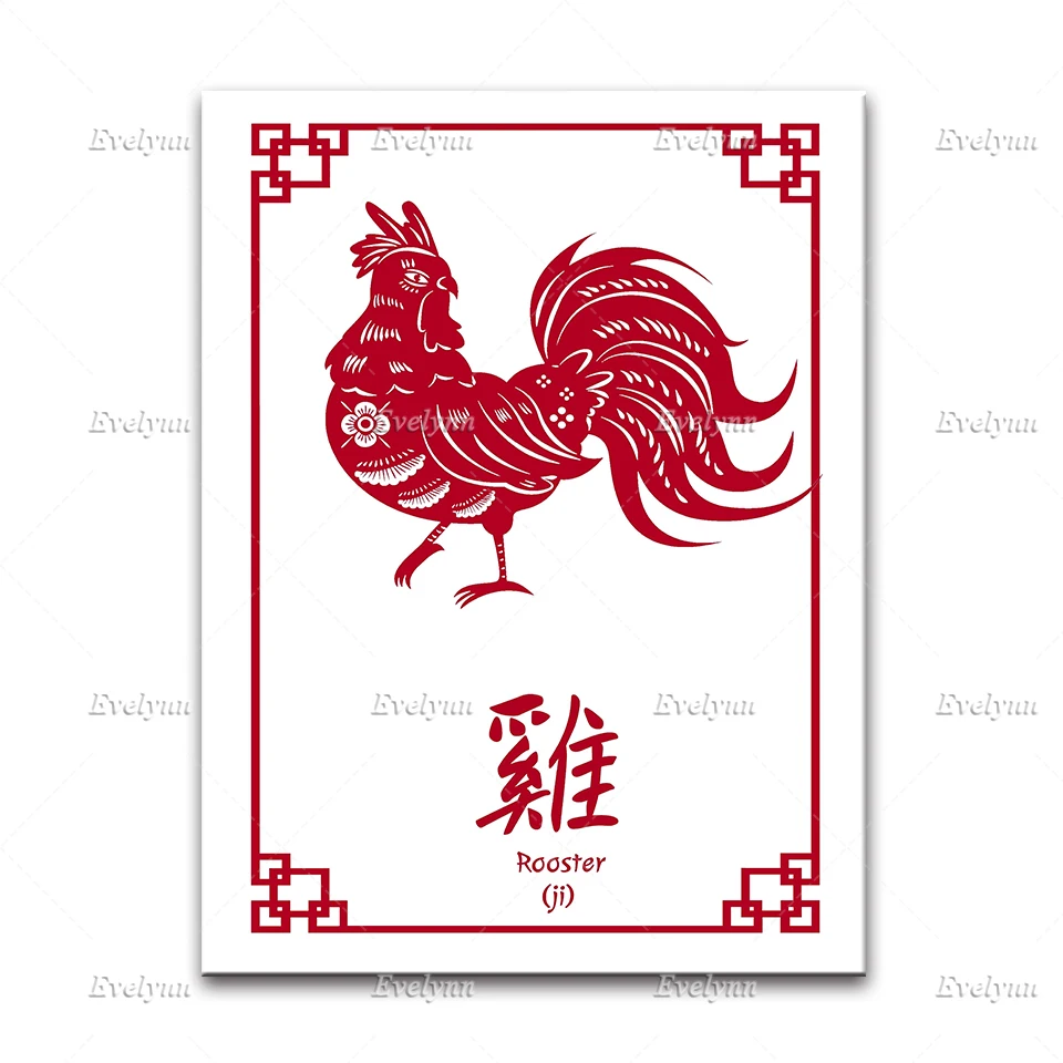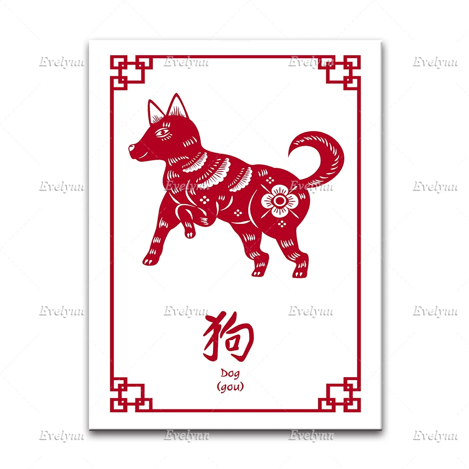 Постеры с китайскими знаками Зодиака, восточные искусства, дракон, член, свинья, змея, овечка, крыса, тигр, лошадь, бык, собака, настенное искусство, холст, домашний декор