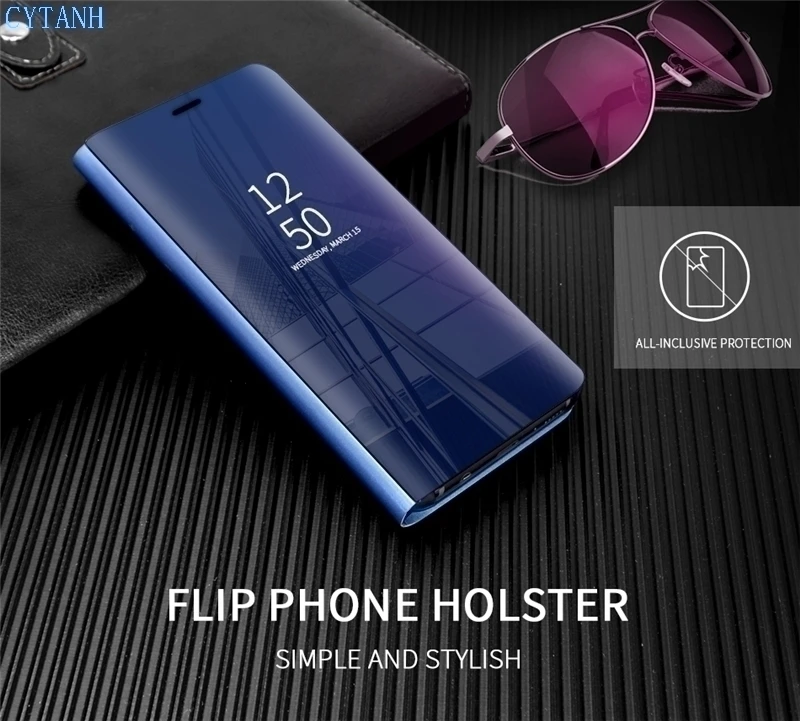 Умный кожаный флип-чехол с вертикальным кронштейном, зеркальный чех...