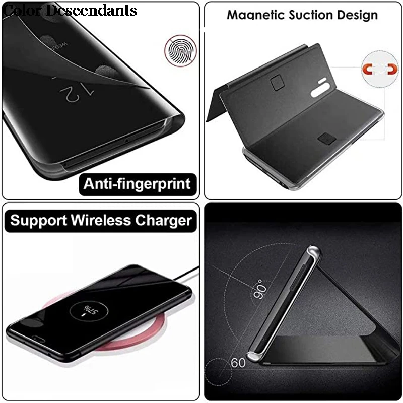 Зеркальный кожаный флип-чехол для samsung galaxy s9 s8 plus s10 5G ...