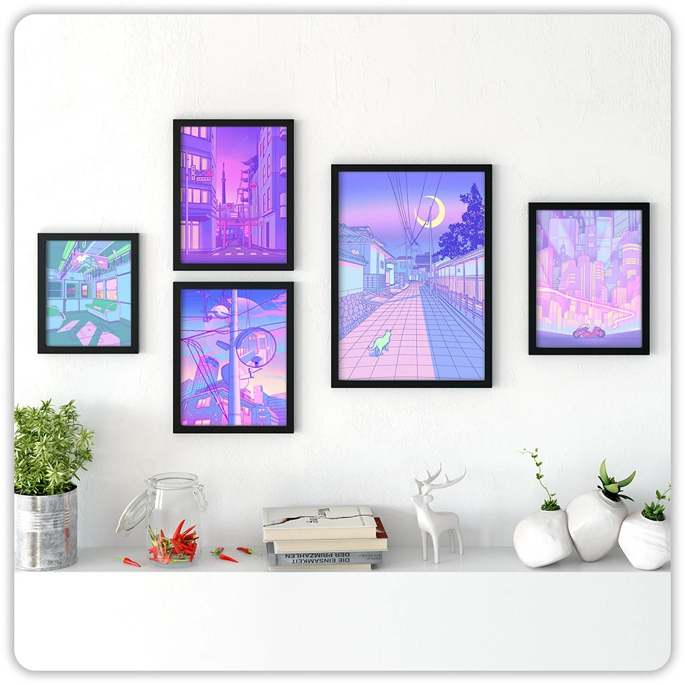 Настенное искусство домашний мультяшный дом уличный Декор холст печать живопись Луна автомобиль современный постер гостиная модульные картины рамка художественная картина