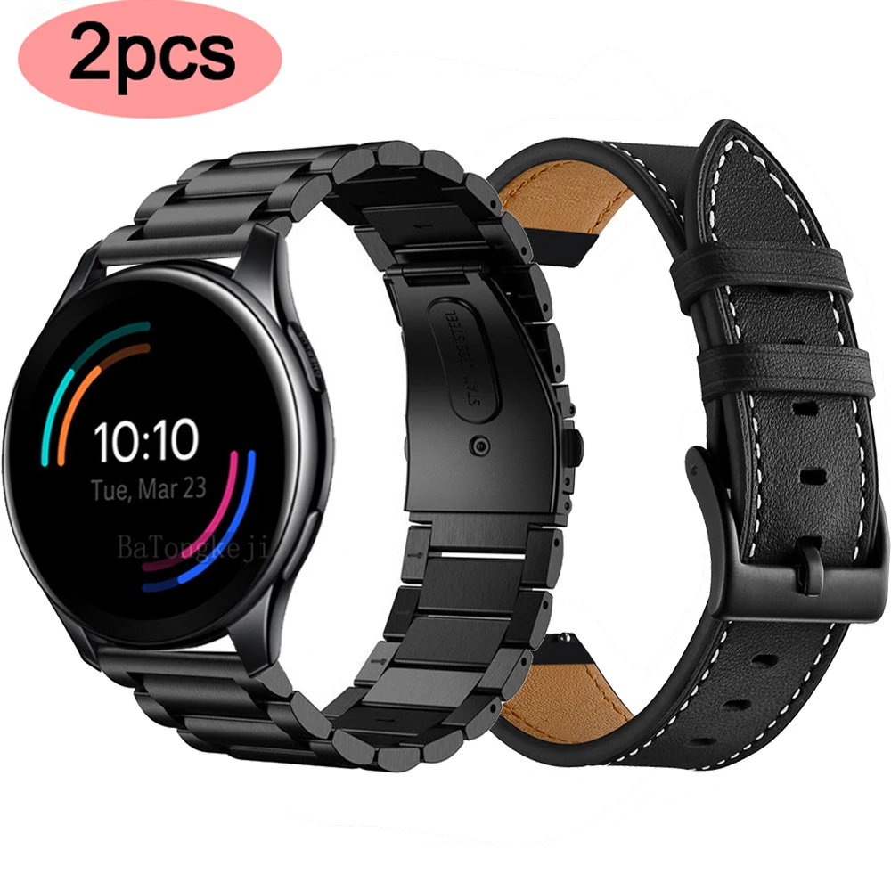 Металлический ремешок и ремешок из натуральной кожи, 2 шт., для сма...