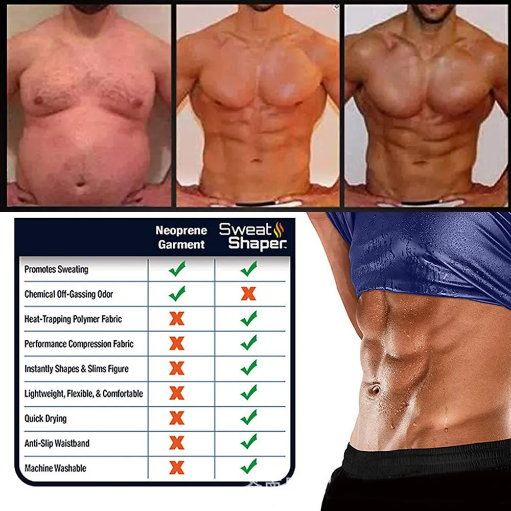 Мужская Тренировочная футболка для живота, компрессионная рубашка для похудения, корсет для сжигания жира, фитнеса, пота, профессиональный полимер