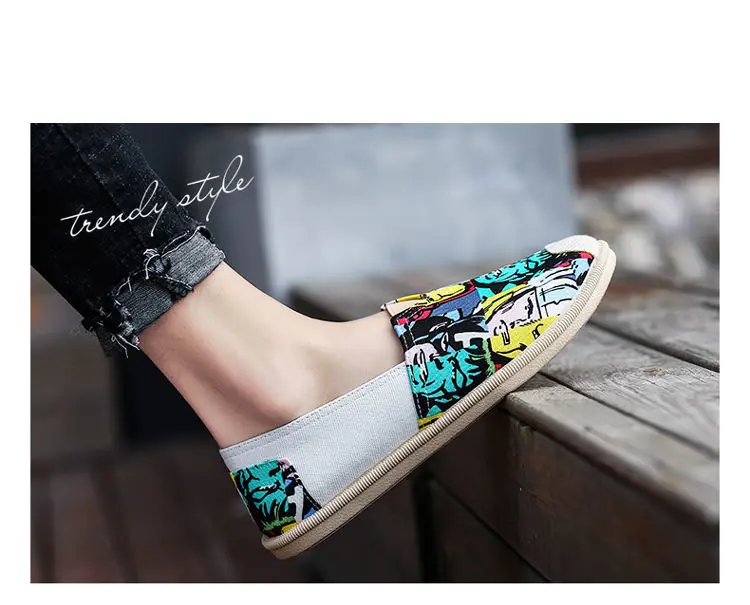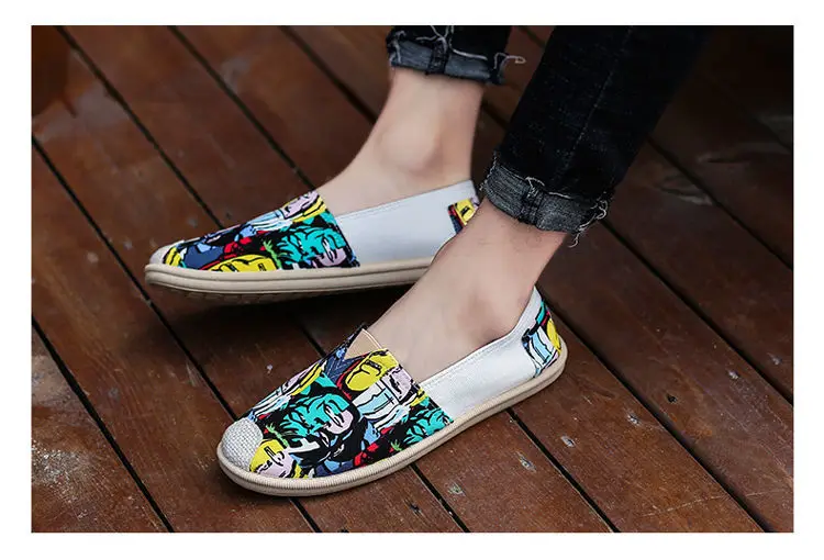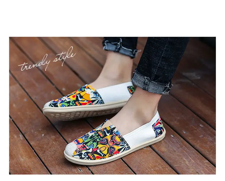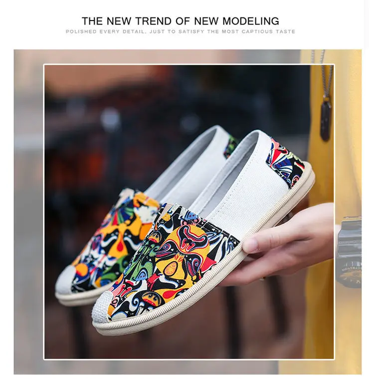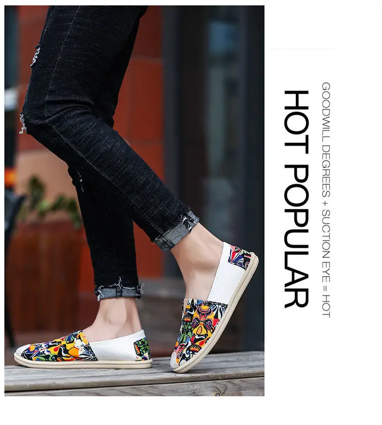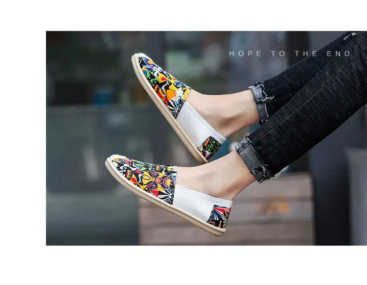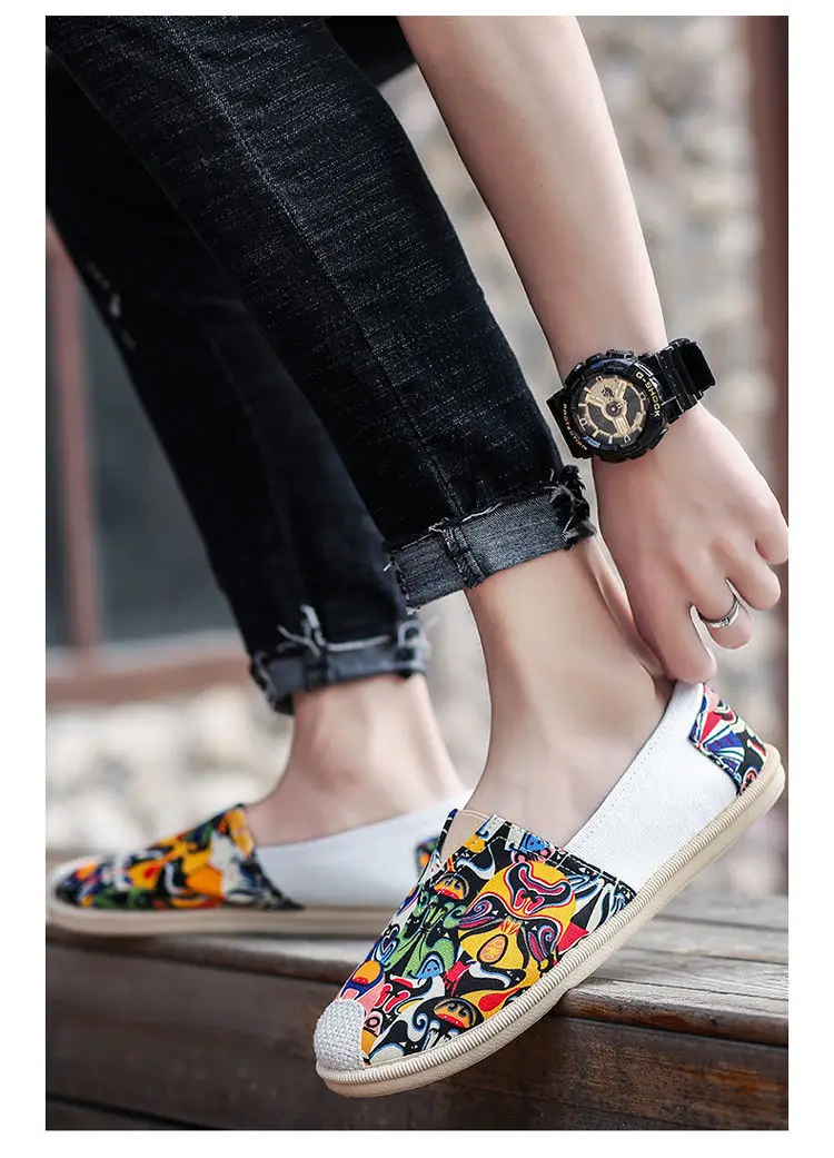 Вождения Стиль повседневная обувь мужская обувь на плоской подошве, рыбаков парусиновая обувь Этническая обувь Лоферы Закрытая обувь модная печатная ткань для обуви