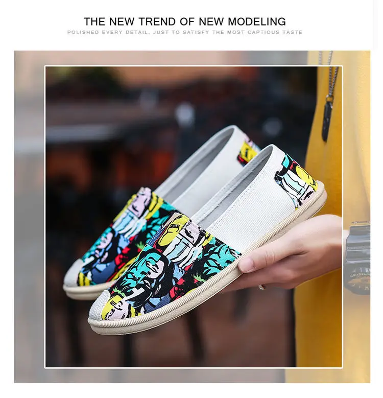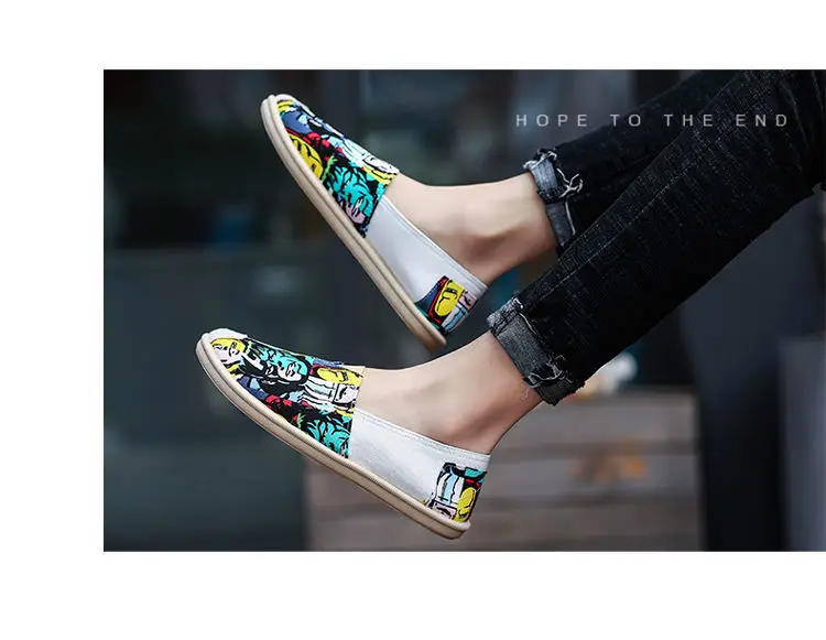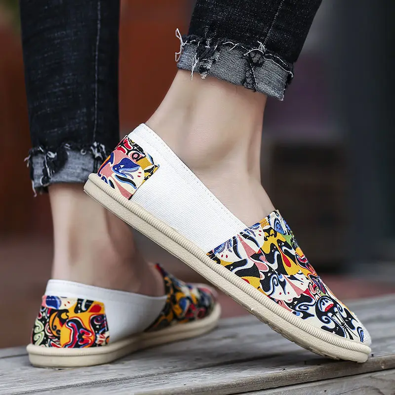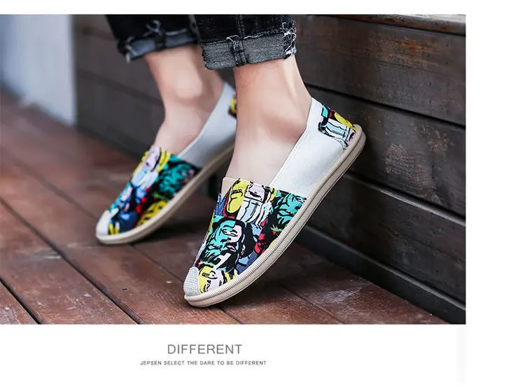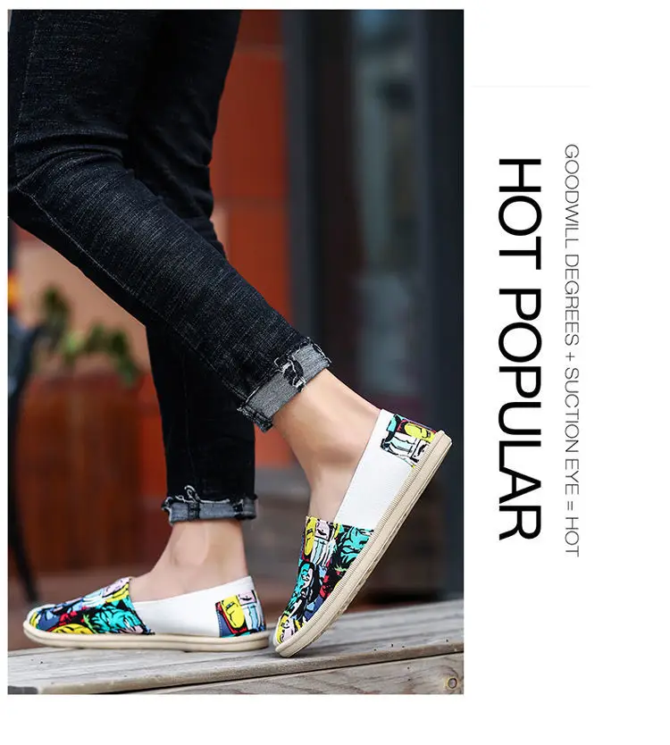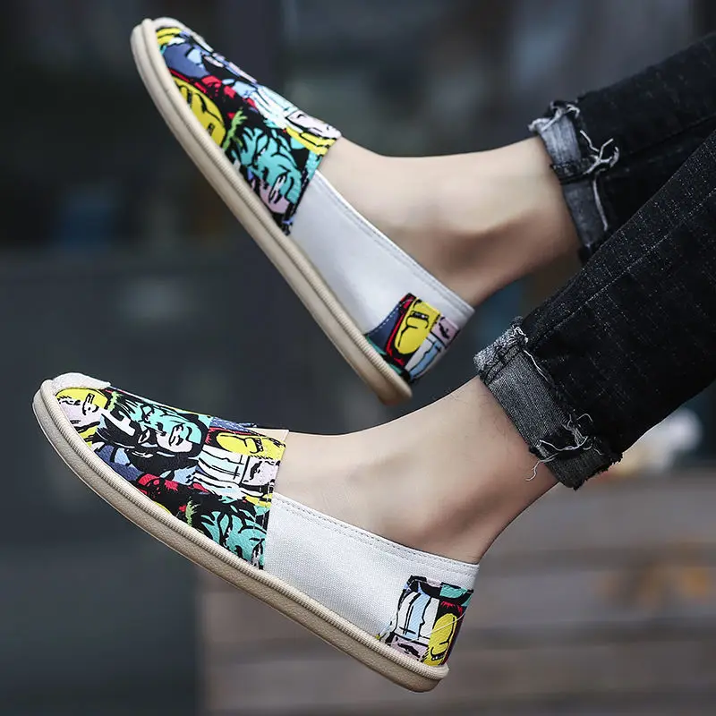 Вождения Стиль повседневная обувь мужская обувь на плоской подошве, рыбаков парусиновая обувь Этническая обувь Лоферы Закрытая обувь модная печатная ткань для обуви
