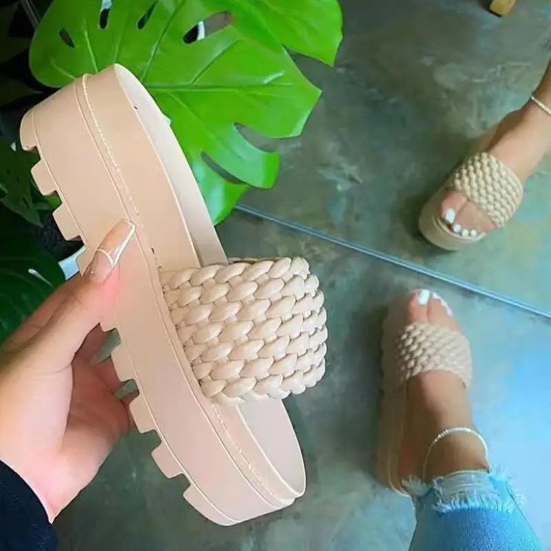 Женские шлепанцы на платформе 2021, летние плетеные тапочки, Женска...