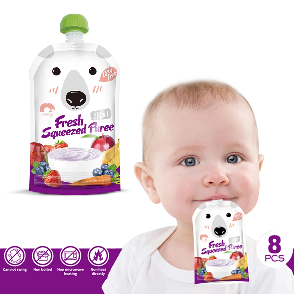 4 шт.8 шт./упак. мультфильм 200 мл Многоразовые Детские Еда мешочек для хранения детей сумка грудное молоко; Сумка для младенцев, двойная молния головные уборы сумки