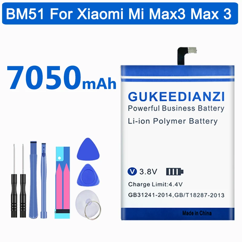 Аккумулятор GUKEEDIANZI для телефона Xiaomi mi Max3 BM51, Сменный аккумулятор для Xiao mi Max3 Max 3 7050 мАч BM51 с номером отслеживания инструментов