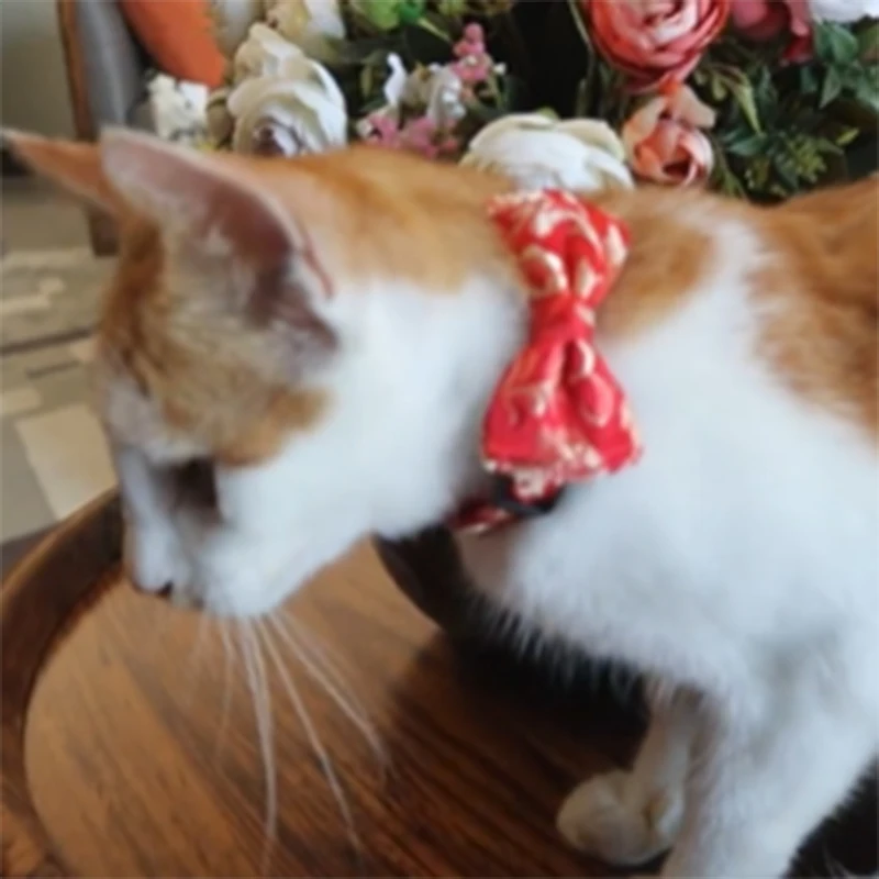 Тканевый Регулируемый кошачий воротник в китайском стиле бант ошейник для котенка с застежкой-колокольчиком галстук-бабочка воротник для галстука-бабочки аксессуары для кошек