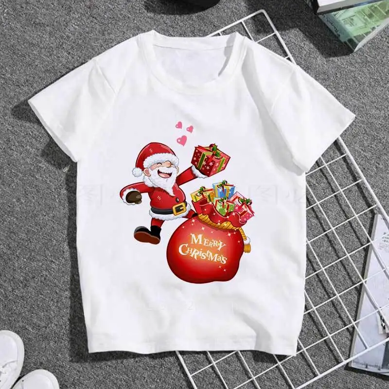 Летняя новая футболка с милым рисунком Санты, Забавная детская одеж...