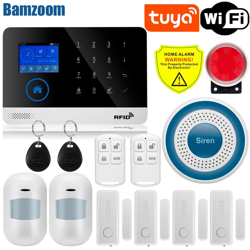 Умная Беспроводная сигнализация Tuya, Комплект охранной сигнализации с Wi-Fi, GSM, датчиком движения и управлением через приложение