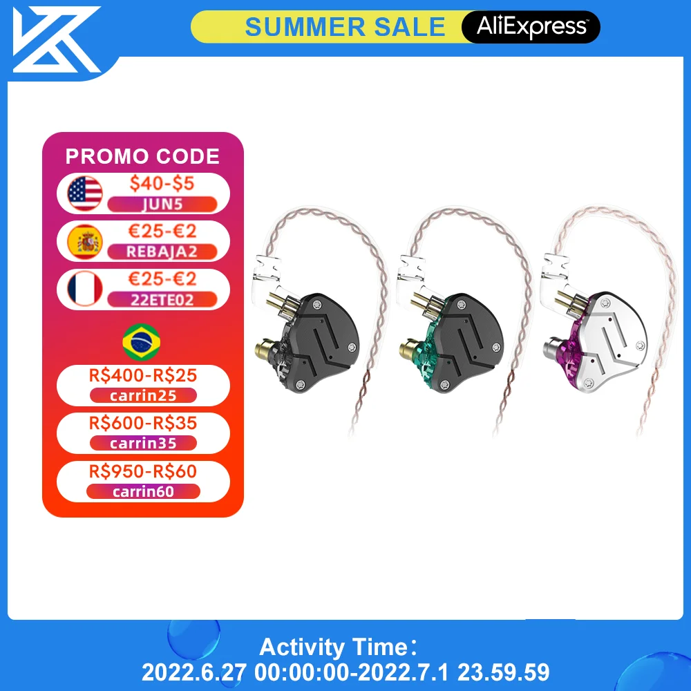 Проводные Внутриканальные наушники KZ ZSN 1BA 1DD с гибридной технологией, металлические Hi-Fi наушники-вкладыши с басами, гарнитура с монитором, спортивные наушники с шумоподавлением