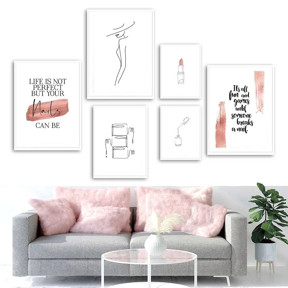 Девушка лак для ногтей линия Цитата скандинавский стены Искусство Холст Живопись скандинавские плакаты и принты стены картины для гостиной Декор