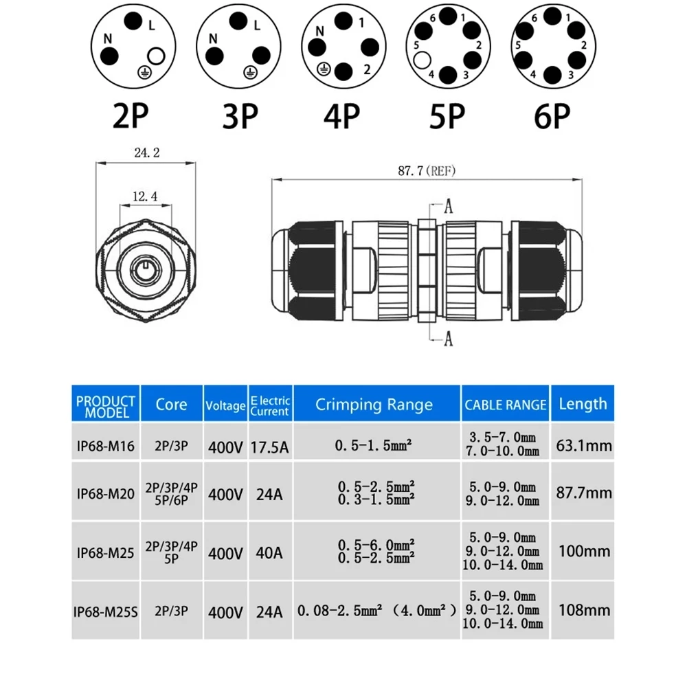 Нейлоновый кабель M20, IP68, водонепроницаемый разъем, 23456 контактный клеммный адаптер, винтовой провод, разъем для светодисветильник льника герметичная распределительная коробка, распределительная коробка