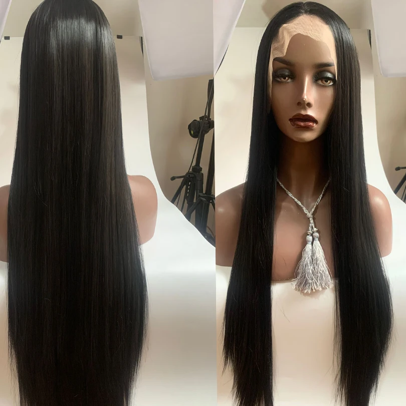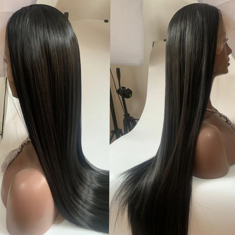 Шелковистый прямой натуральный черный цвет синтетический кружевной ...
