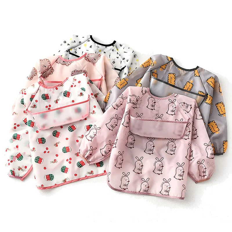 Милые детские нагрудники, водонепроницаемые нагрудники для кормления с длинным рукавом, детская одежда для кормления с мультяшным принтом, Детский фартук, бандана