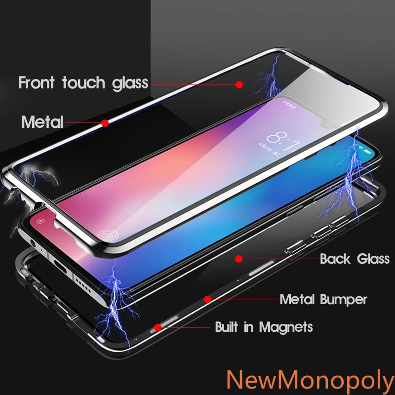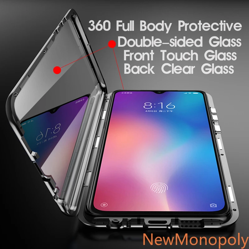 Двухсторонний магнитный металлический чехол для Xiaomi Mi 9 SE 8 CC9 A3 Lite 9T 10 Pro Redmi K20 Note 8 9 9 S 8T 7 10 Pro 8A, стеклянный чехол