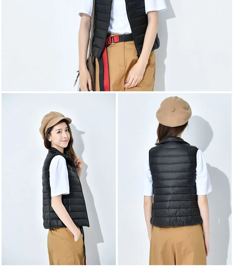 Зимний теплый жилет, куртка, черный зимний жилет без рукавов с воротником-стойкой, короткий жилет, куртка на белом утином пуху, женский жилет, жилет, жилет