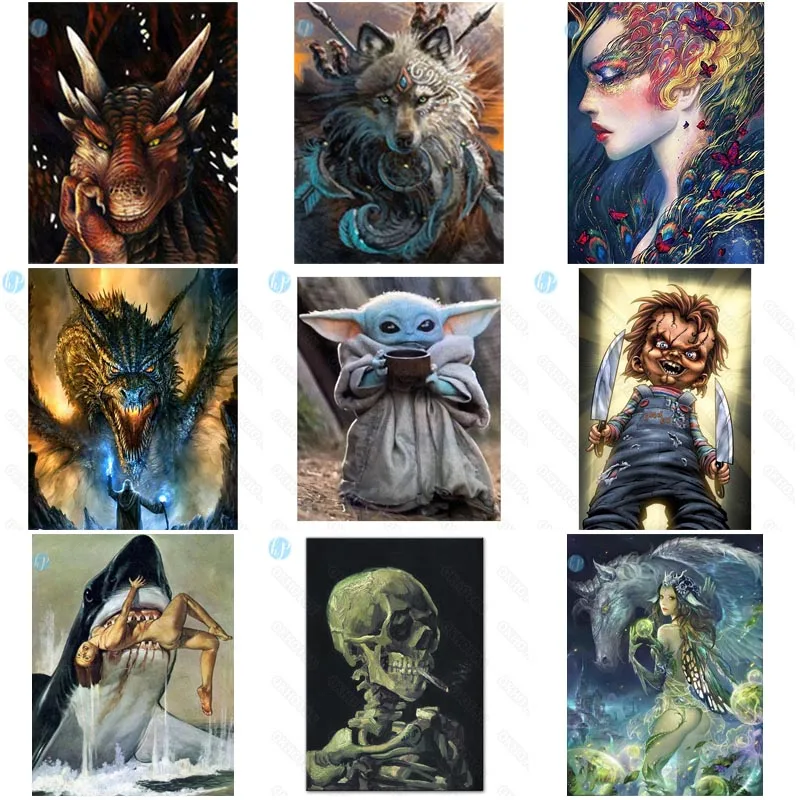 Sapported Дракон Акула алмазная живопись круговое сверло квадратные Алмазы Искусство Вышивка крестиком Картина Современная отделка спален