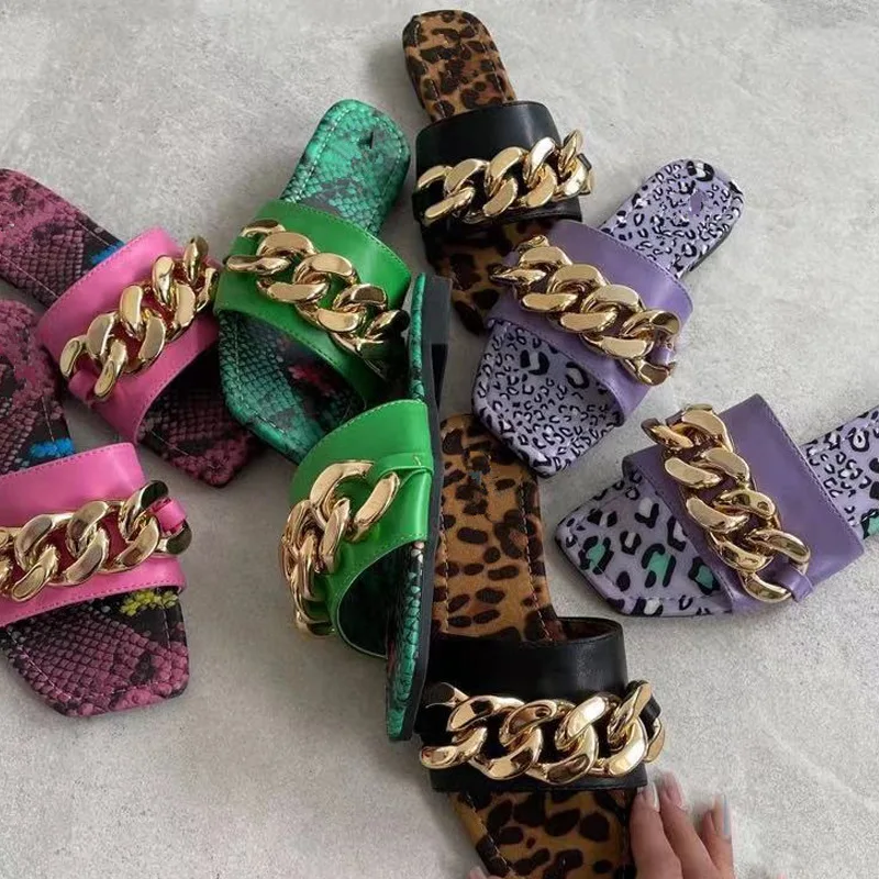 Мюли женские с квадратным носком, сланцы, плоская подошва, с цепочк...