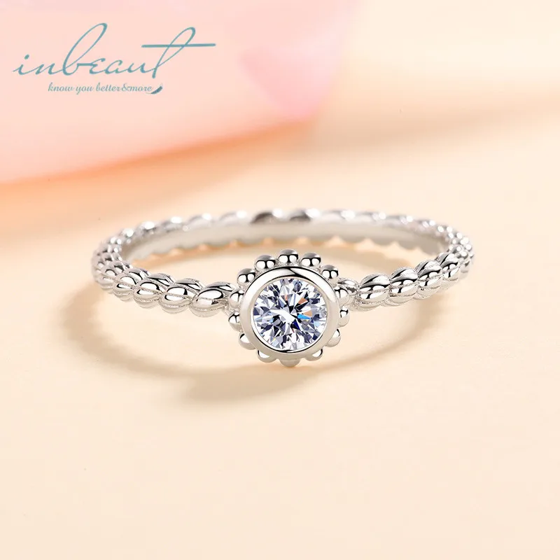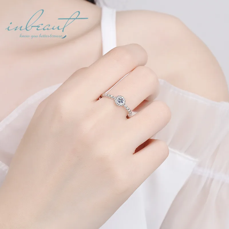 Inbeaut пройти Diamond тесты 0,3 ct Круглый отличный крой D Цвет Муассанит кольцо 925 серебро сверкающий камень свадебные кольца для женщин