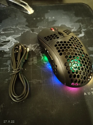 Быстрая доставка. Мышь хорошего качества. Вы можете выключить свет, нажав на обе боковые кнопки.
