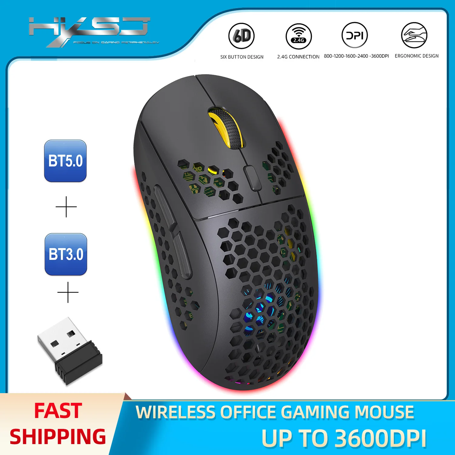 HXSJ новая охлаждающая мышь с отверстиями, 2,4 ГГц, Bluetooth, трехрежимная мышь 3600DPI, регулирусветильник ка может выключить светильник для ноутбука, ПК