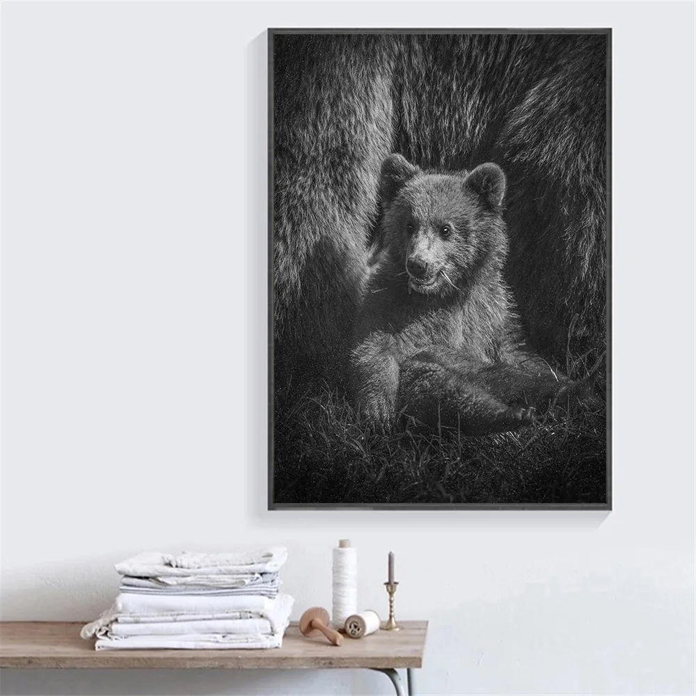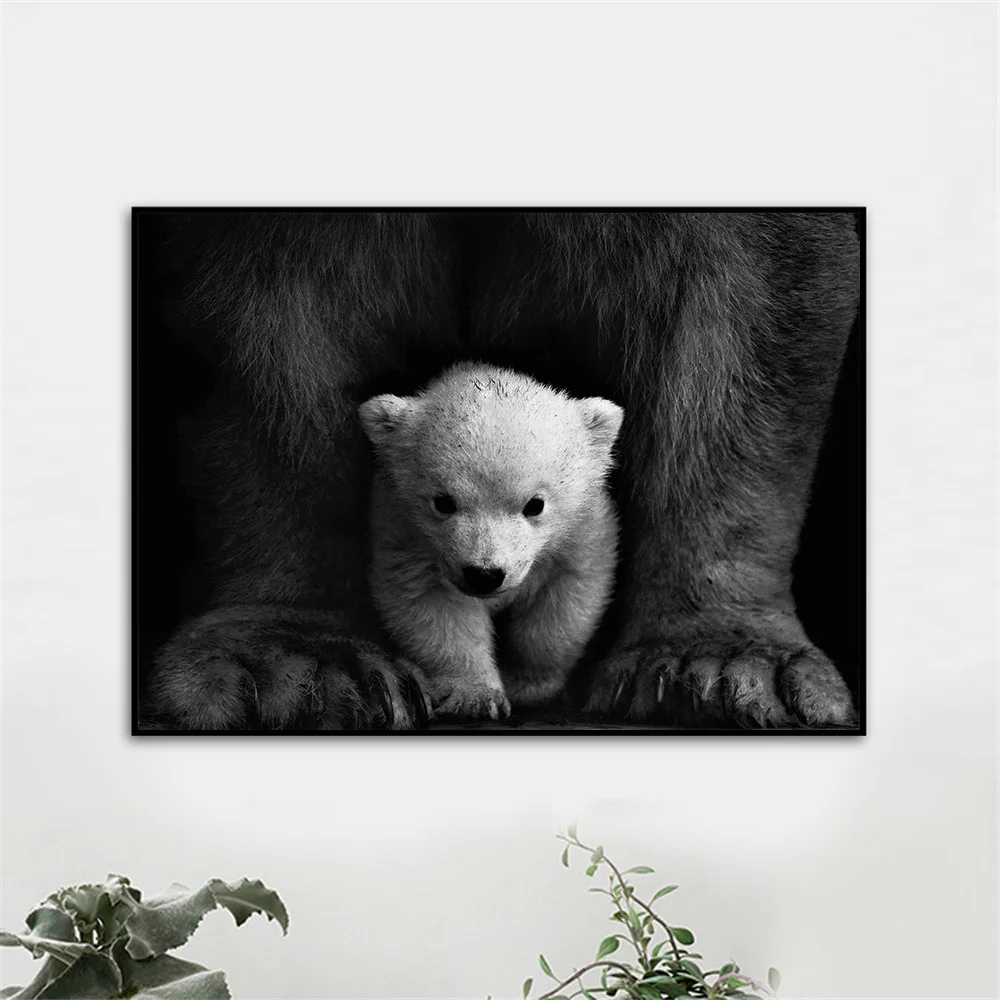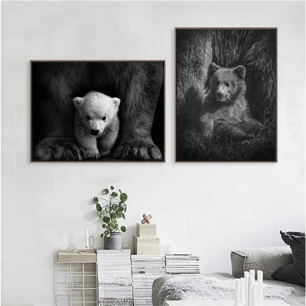 Настенный плакат с изображением медведя в скандинавском стиле, черно-белый полярный медведь, живопись на холсте, современные картины для гостиной, украшение для дома