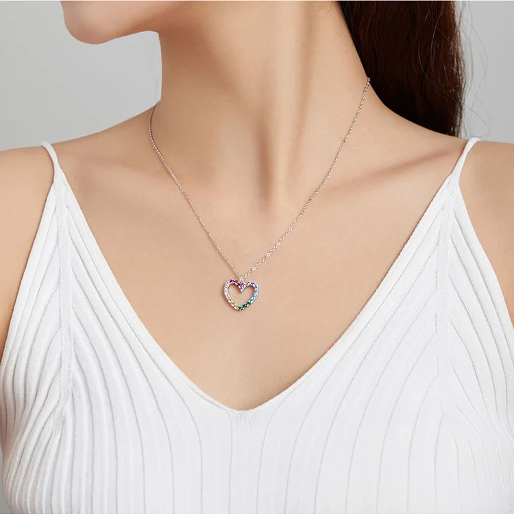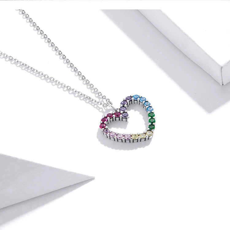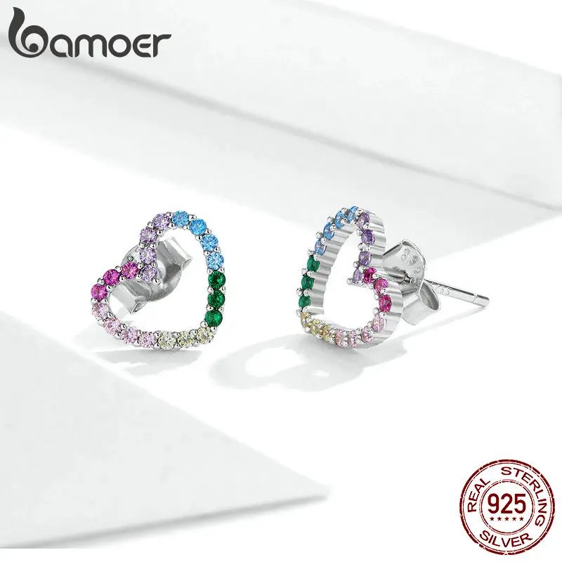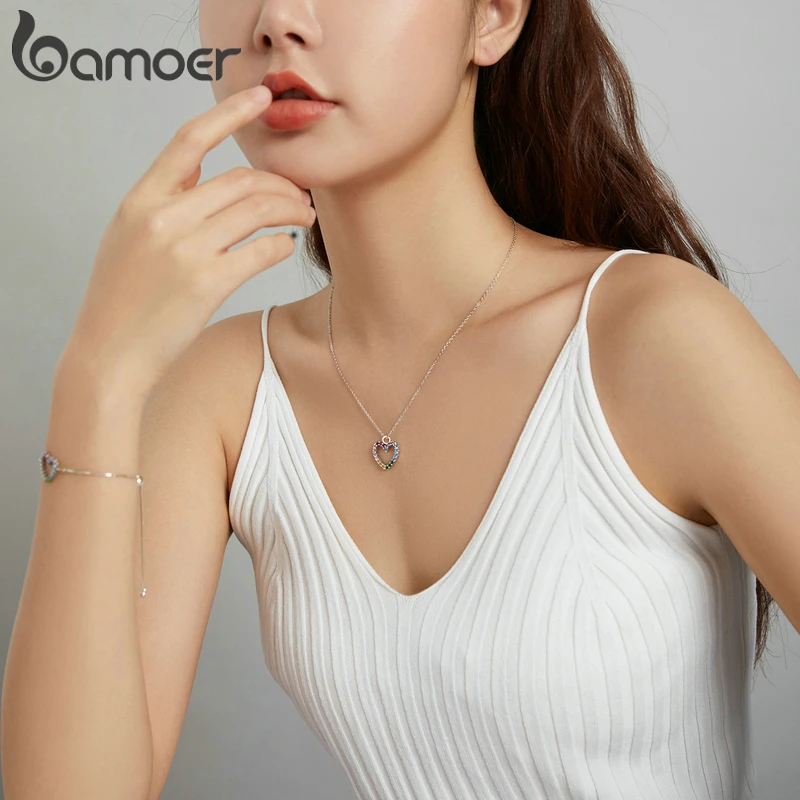 Набор ювелирных украшений bamoer, регулируемое ожерелье, браслет, серьги из стерлингового серебра 925 пробы с разноцветным сердечком и цирконием