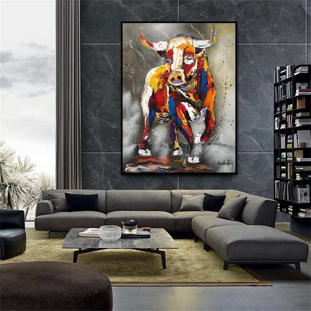 Современный поп-арт граффити Животные корова и собака печать на холсте живопись Настенная картина для гостиной домашний Декор без рамки