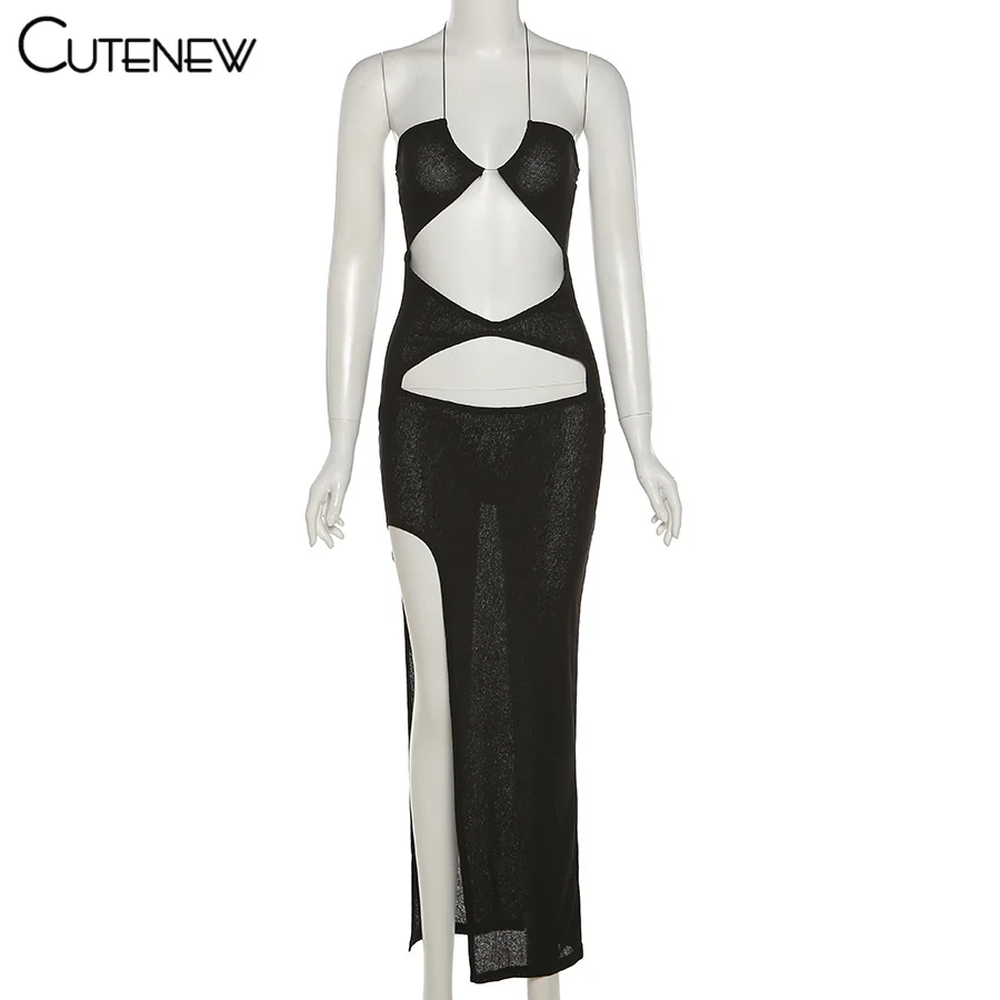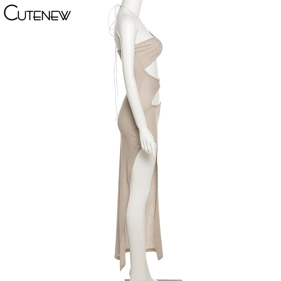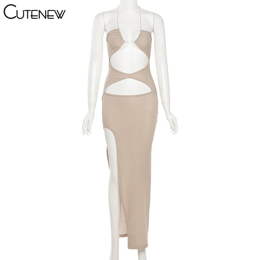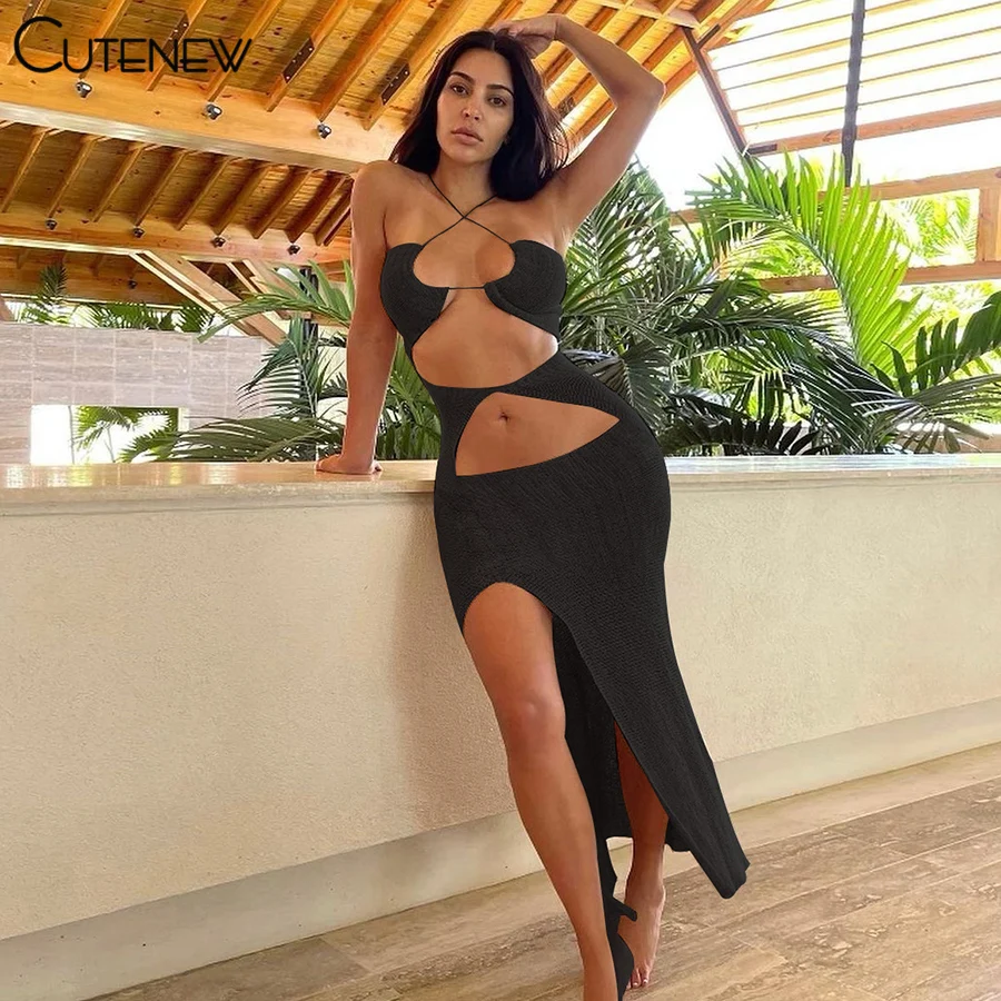 Платье женское с вырезом сбоку, с лямкой на шее, однотонное удобное, пикантная одежда для отпуска, клуба, лето