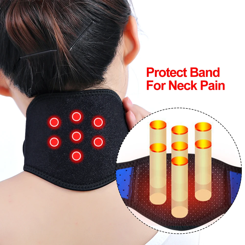 Турмалиновый неопреновый бандаж для поддержки шеи, магнитная терапия, самонагревающийся магнит для шеи, защитный ремешок для боли в шее