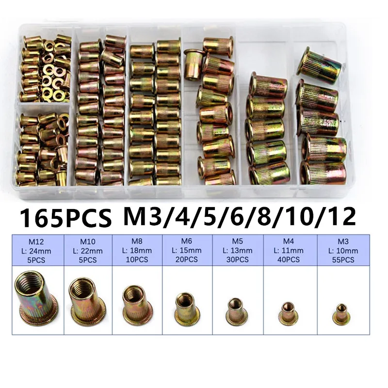 Заклепочная гайка из углеродистой стали, 165 шт.компл., M3 M4 M5 M6...