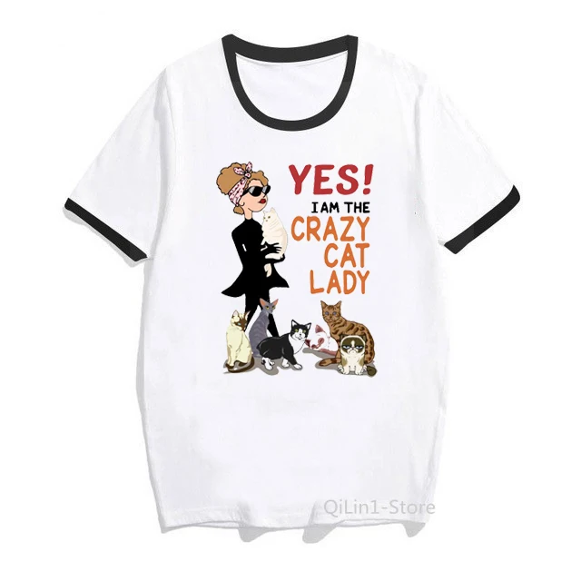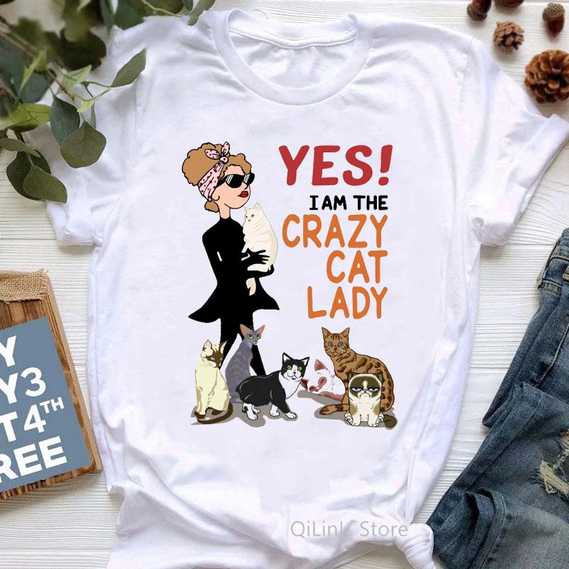 Женская одежда 2021, женская футболка с изображением Crazy Cat, Женская забавная футболка, летние Графические футболки, футболки с изображением кошки, влюбленных, подарок на день рождения, одежда для девочек, Топ