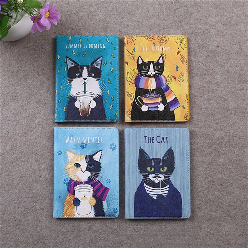 Обложка для паспорта с мультипликационным животным, кошкой, для женщин и мужчин, чехол из искусственной кожи для визиток, паспорта, кредитных карт