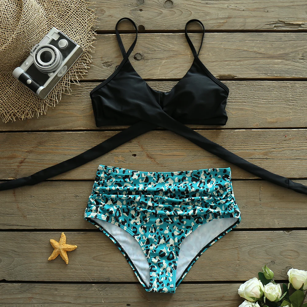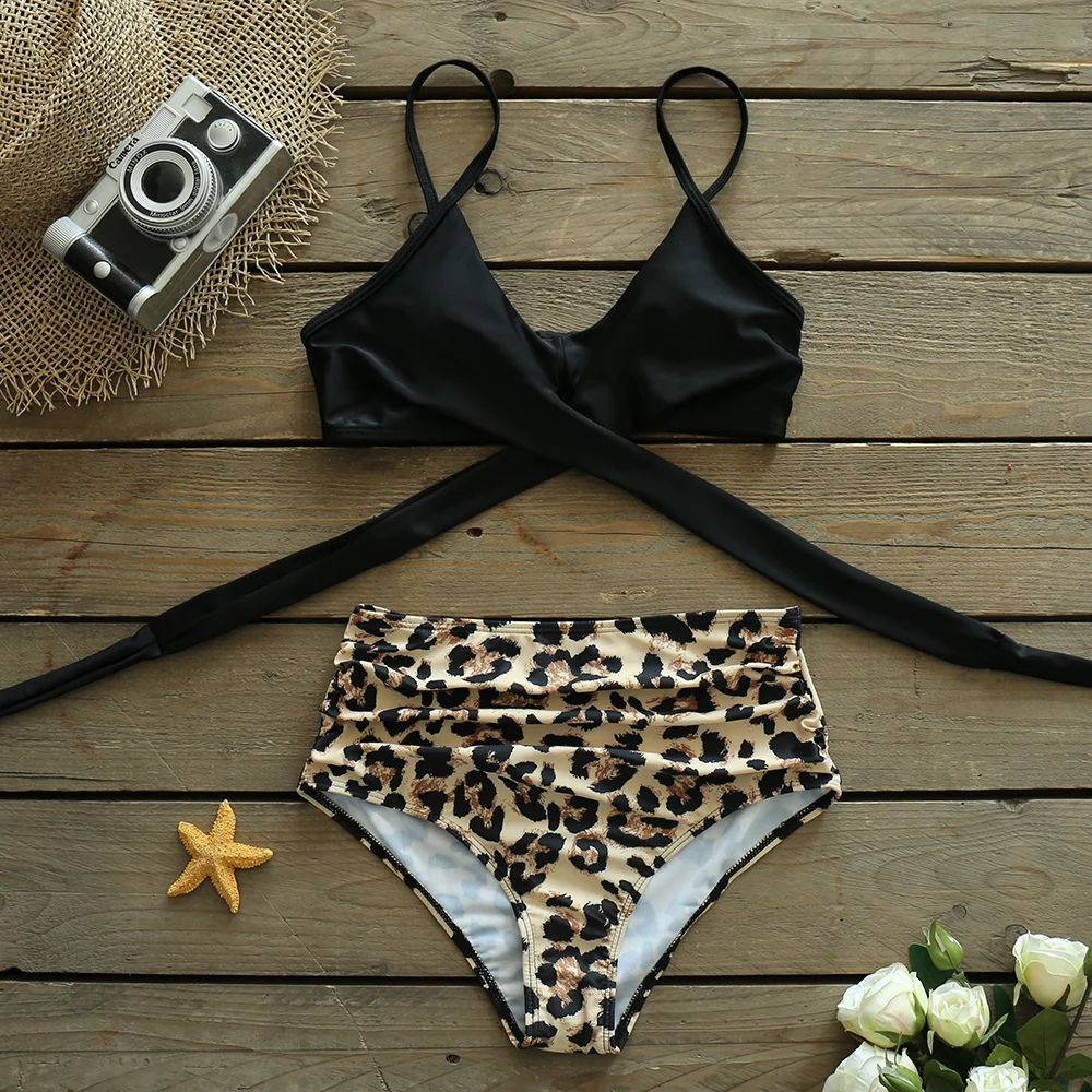 Сексуальные бикини с леопардовым принтом и листьями, женский купаль...