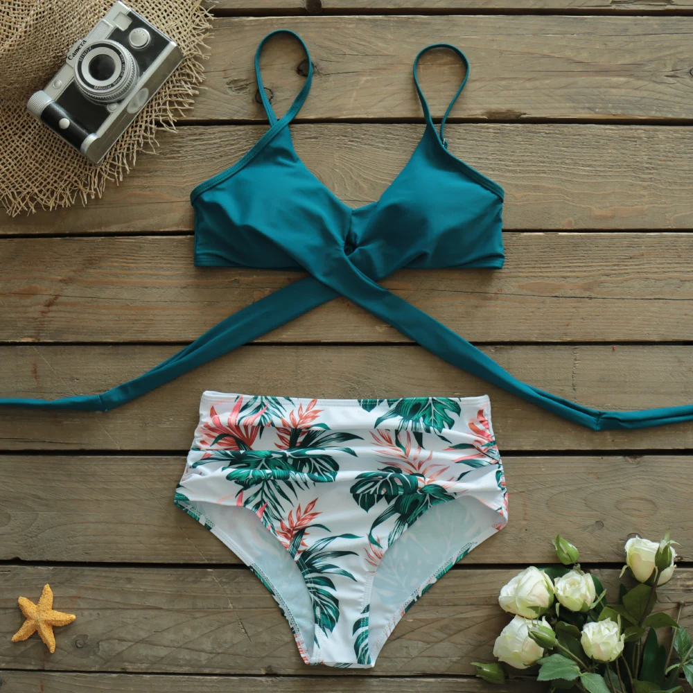 Цветочный купальник, женское бикини, сексуальная пляжная одежда, комплект бикини с завязкой, купальник, бандажный купальный костюм с пуш-ап, купальный костюм 2021