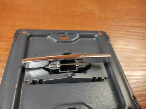 Посылка пришла за 14 дней. Выключатель хорош. Жалко что следы пальцев будут видны. Есть небольшой дефект виде ямки, но в глаза не бросается. Клавиша работает четко. Смотрится солидно. Чтоб закрепить выключатель нужно снять пластиковую крышку.