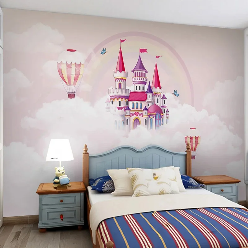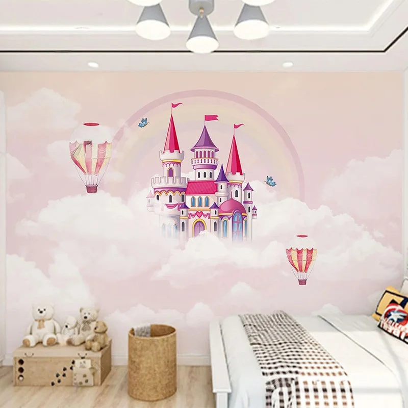Настенная Роспись по индивидуальному заказу 3D в современном скандинавском стиле Ins, рисунок вручную, розовый воздушный шар, замок, фон для детской комнаты, обои 3D