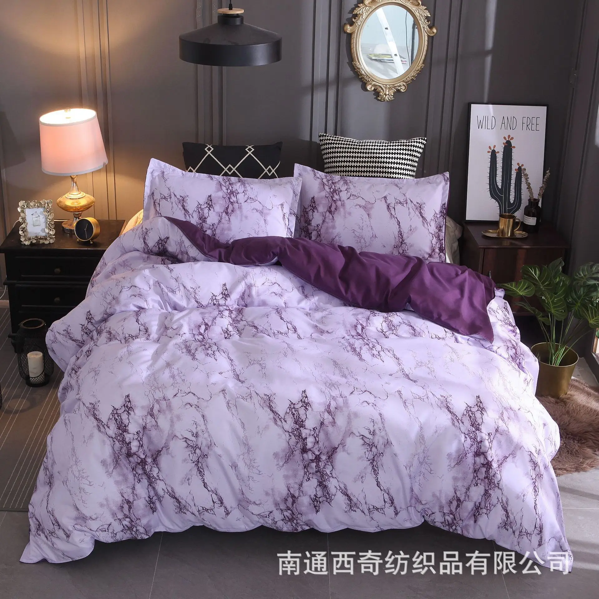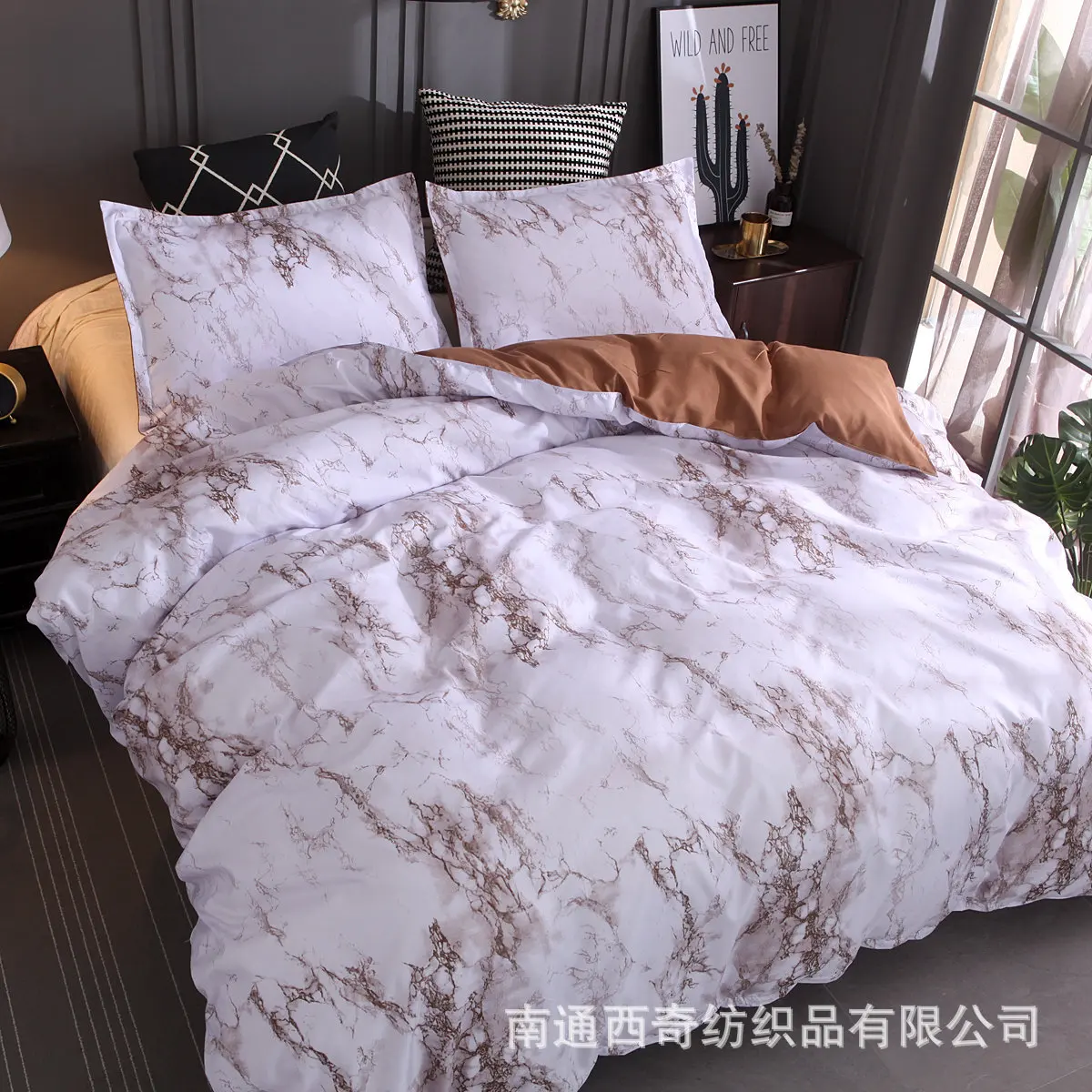 Комплект постельного белья, двухстороннее покрывало с мраморным рис...