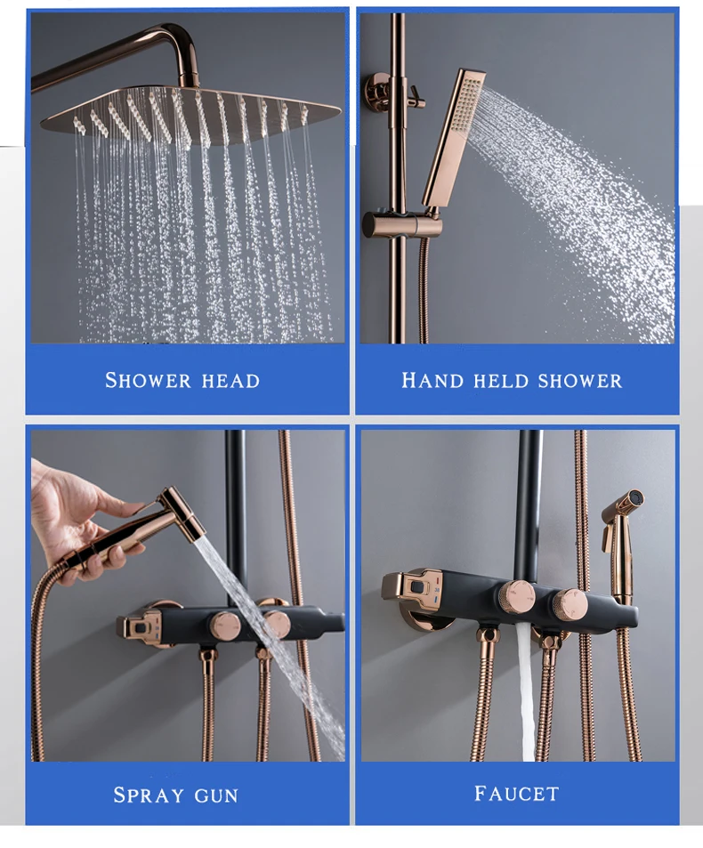 Черный Розовый Золотой Костюм Американский четыре функции насадка для душа Ванная комната бытовой распылитель