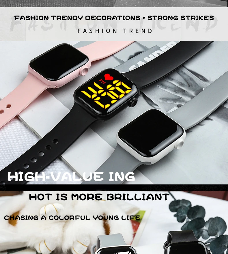 Часы наручные мужские электронные светодиодные, спортивные водонепроницаемые Модные Роскошные простые детские, с силиконовым ремешком