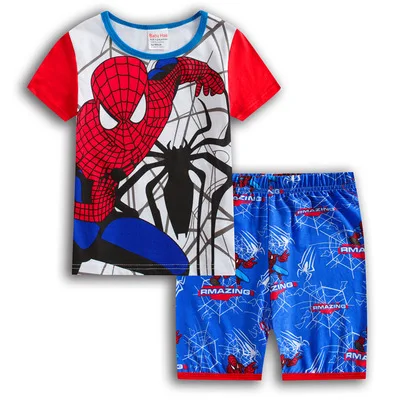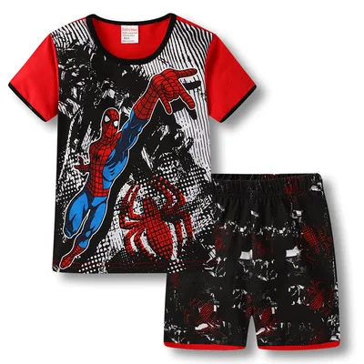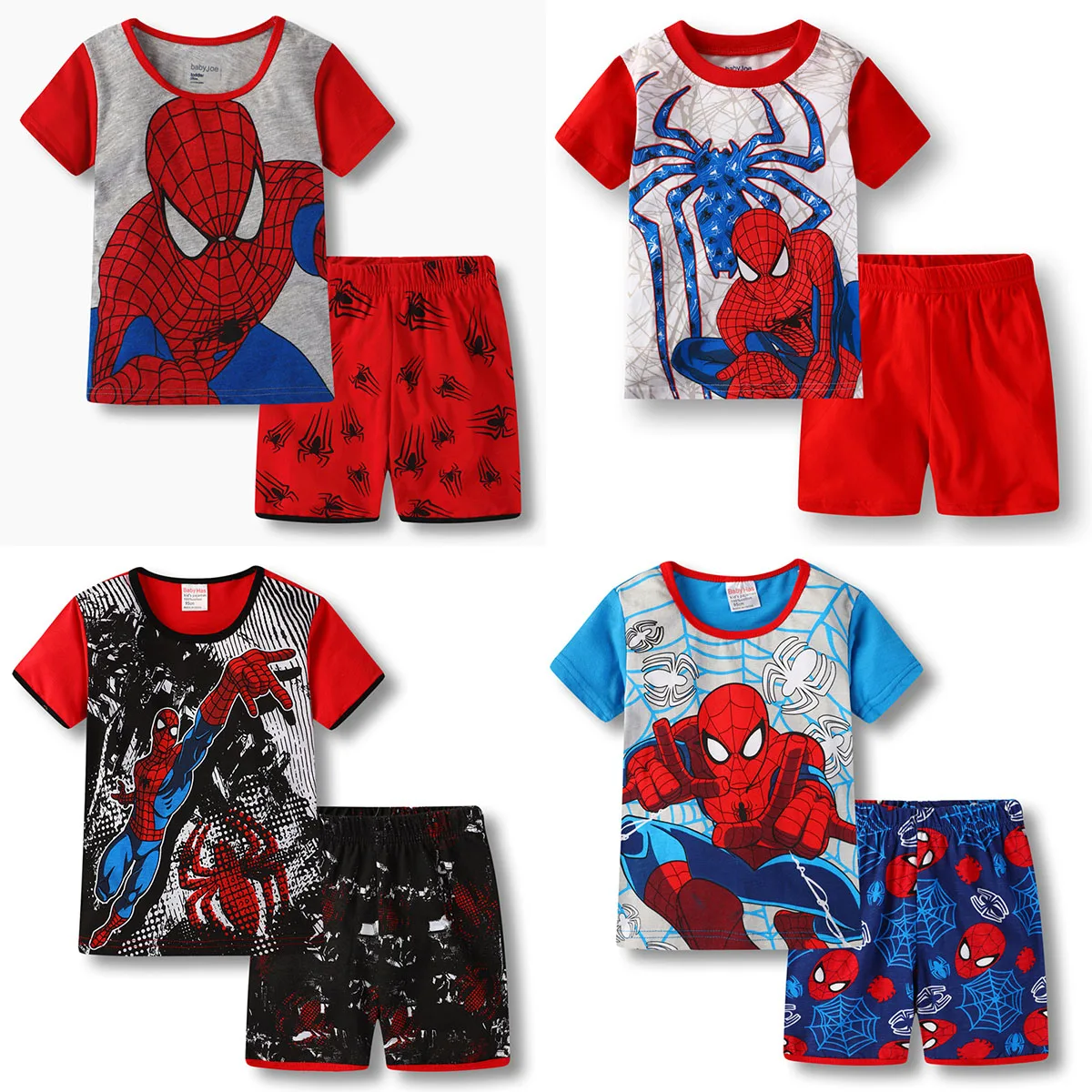 Домашняя одежда с короткими рукавами для мальчиков, с изображением героев Диснея, Марвел, спайдермена, Мстителей, детская одежда, летние костюмы, пижамы с героями мультфильмов