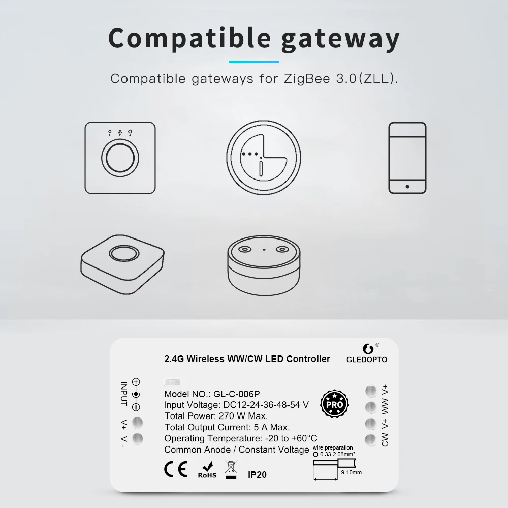 G светодиодный OPTO Zigbee 3,0 Pro WWCW Светодиодный Управление; Смарт-приложение голосовой Управление работать с Alexa Echo плюс SmartThings РЧ пульт дистанционного управления