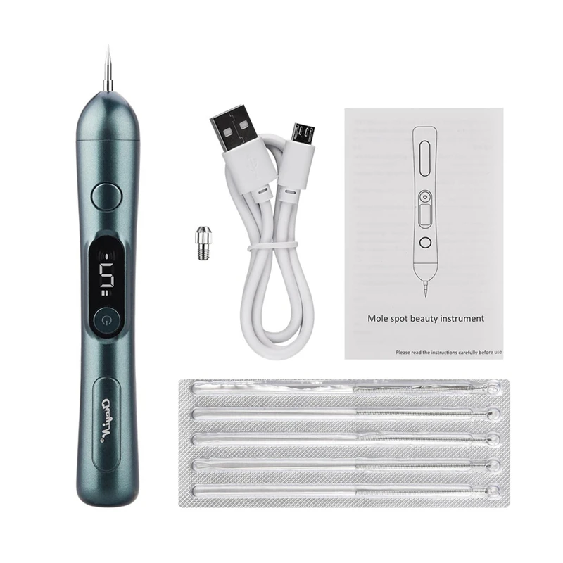 Особенности: ①. Технология электронной ионизации, с использованием плазменного теплового эффекта, когда кончик пера касается кожи, высокотемпературные электрические ионы генерируются, чтобы мгновенно карбонизировать крот на коже. Физическое Удаление родинок безопасно, без побочных эффектов, без тока, без раздражения. ②. Быстро нажмите дважды, чтобы включить синий светильник, отремонтировать синий светильник, отсканировать пятна, не оставляя следов. ③. Он имеет 9 видов интенсивности для различных процедур. Более низкий уровень используется на пятнах и веснушках. Сильный уровень используется на родинок и бирках кожи. 1-3 шестерни: режим удаления пятен. 4-6 передач: режим удаления моль. 7-9 блок: режим удаления бородавок. ④. Модный дизайн. Заряжайте напрямую через usb-кабель, легко носить с собой и легко управлять. Аккумулятор большой емкости. ⑤. ЖК-дисплей показывает, сколько электричества и уровня интенсивности.
