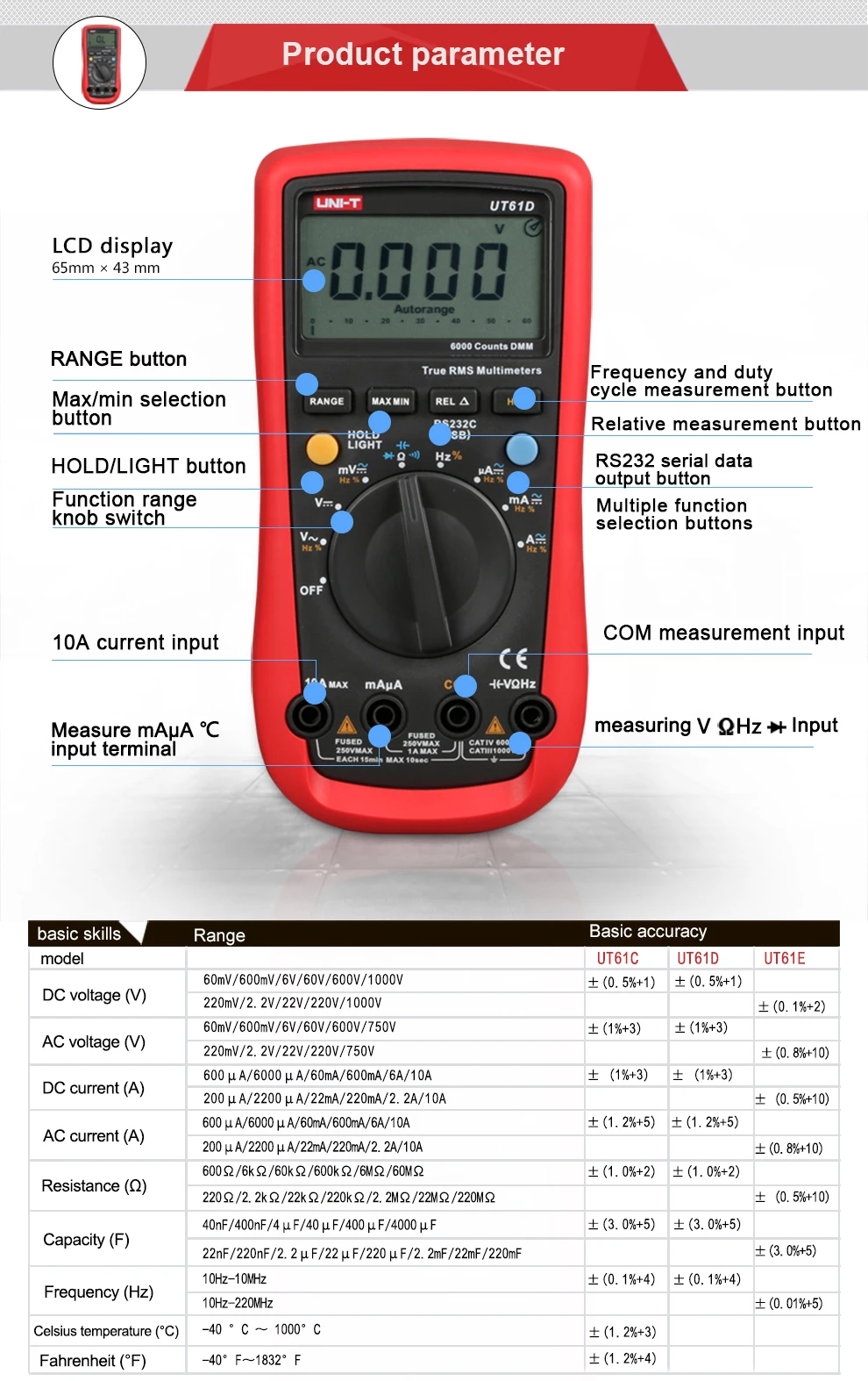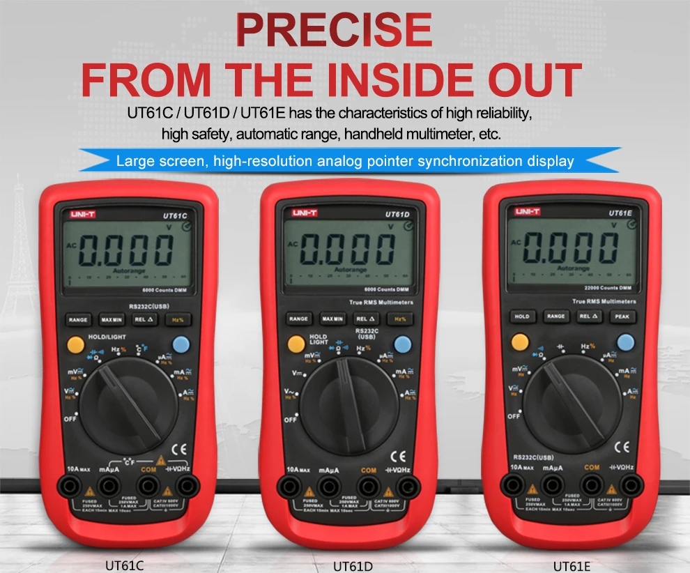 UNI-T Цифровой мультиметр UT61CDE Ohm Вольт-ампер, тестер напряжения, измерительный прибор сопротивления тока, счетчик ремонта электрика