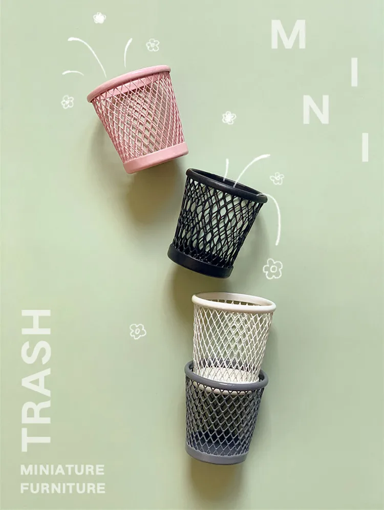 Металлическая мини-мусорная корзина Aizulhomey с мышкой, мебель для кукольного домика OB11, BJD, Lol, Blyth для кукол, аксессуары для ванной, спальни, кухни, игрушки