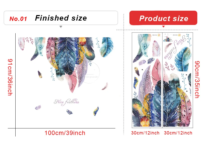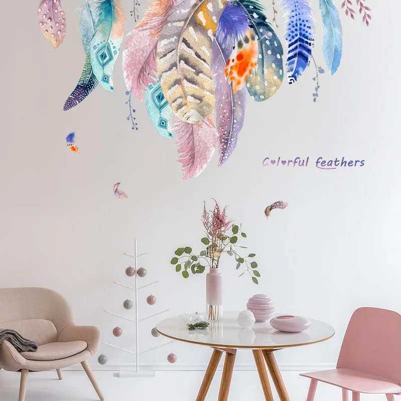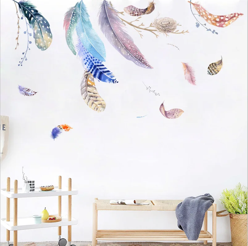100*91 см ins наклейки на стену с перьями для гостиной, спальни, дивана, ТВ, фона, Настенный декор, съемные виниловые наклейки, домашний декор, ПВХ
